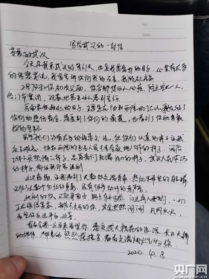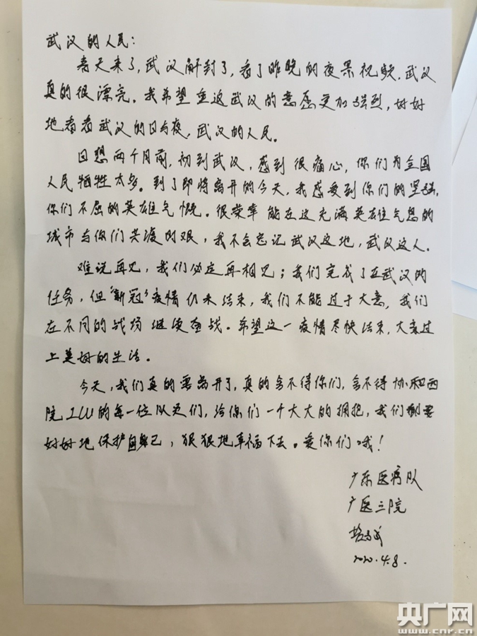援鄂醫(yī)生寫給武漢的信(央廣網(wǎng)發(fā) 廣醫(yī)三院供圖)