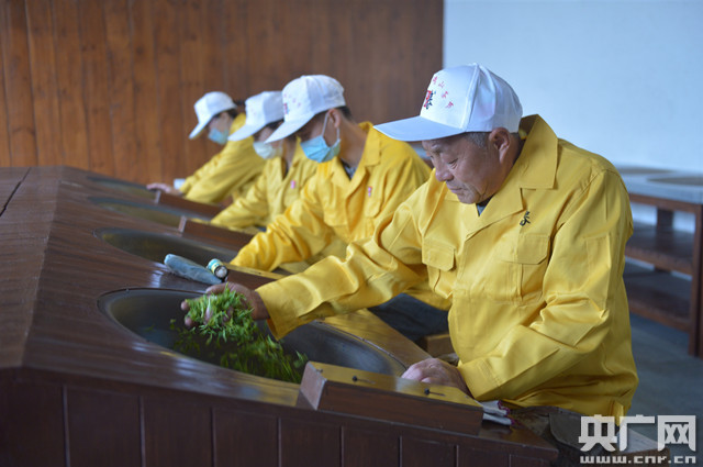 4月10日,青島市嶗山區(qū)王哥莊街道村民在炒制春茶(央廣網(wǎng)發(fā) 王海濱 攝)