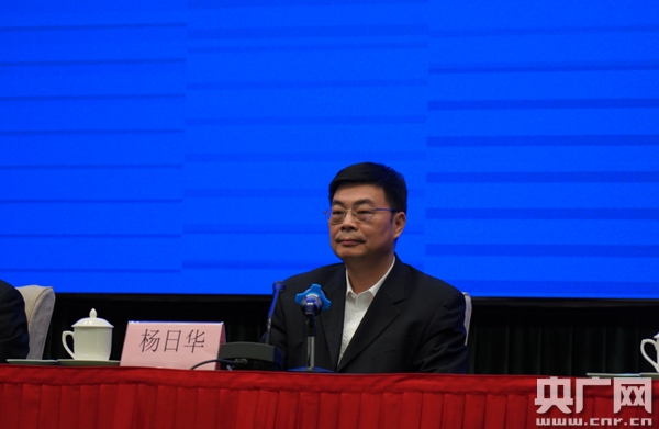 圖為新聞發(fā)布會(huì)現(xiàn)場(chǎng)。楊日華介紹疫情防控相關(guān)情況。(央廣網(wǎng)記者 鄭澍 攝)