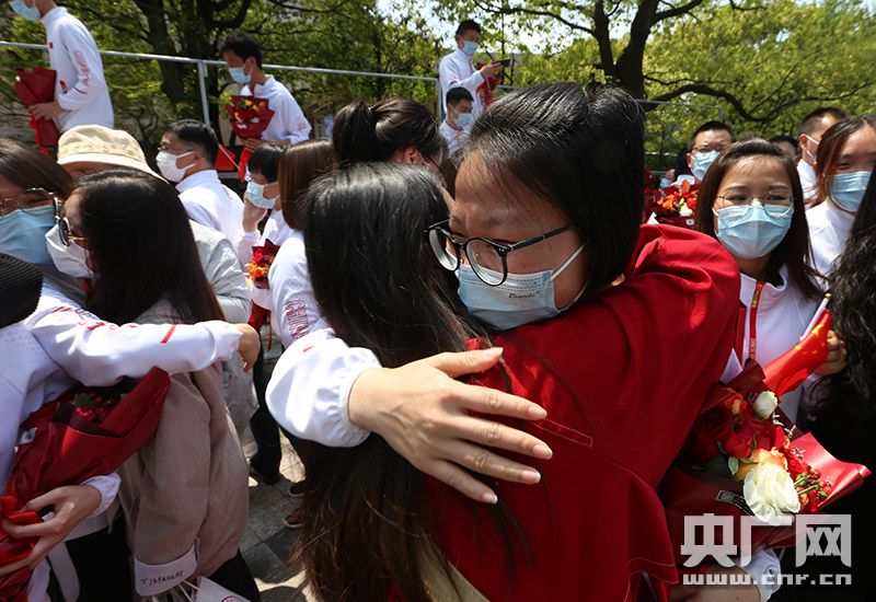央廣網(wǎng)杭州4月16日消息(記者陳瑜艷 謝夢潔 魏煒 通訊員王家鈴 周素琴 李文芳)4月15日,浙江大學(xué)醫(yī)學(xué)院附屬邵逸夫醫(yī)院最后一批次援鄂醫(yī)療隊(duì)結(jié)束隔離休養(yǎng),正式回家與親友團(tuán)聚。這批醫(yī)療隊(duì)包含被譽(yù)為邵醫(yī)“天團(tuán)”的浙江省第四批援鄂醫(yī)療隊(duì)浙大邵逸夫醫(yī)院重癥救治醫(yī)療隊(duì)142位白衣戰(zhàn)士和浙江省首批支援湖北荊門(重癥)醫(yī)療隊(duì)邵逸夫醫(yī)院余下9位專家指導(dǎo)組成員。