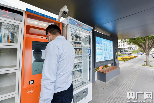 城市候車亭的電子借閱機、自動售賣機等(央廣網記者 舒隆煥 攝)