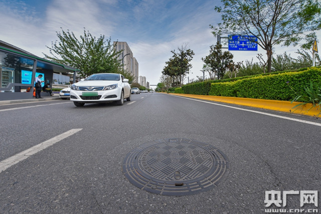 智慧井蓋加裝了水位監(jiān)測裝置(央廣網記者 舒隆煥 攝)