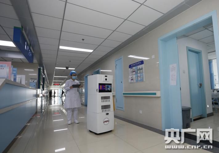 非接觸式醫(yī)療移動平臺在醫(yī)院里“巡房”(央廣網(wǎng)發(fā) 合工大宣傳部供圖)