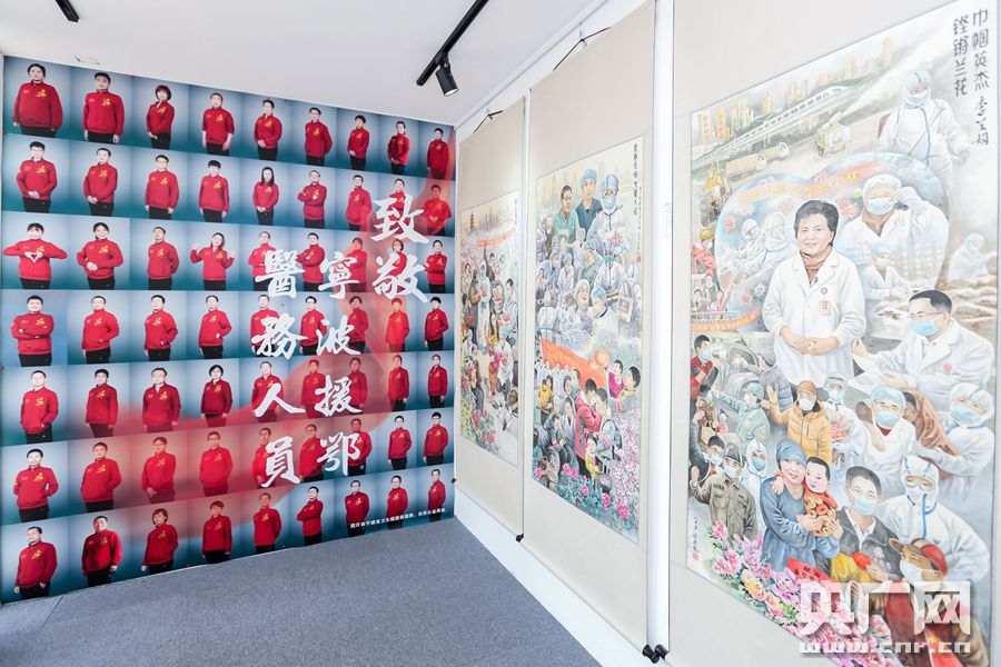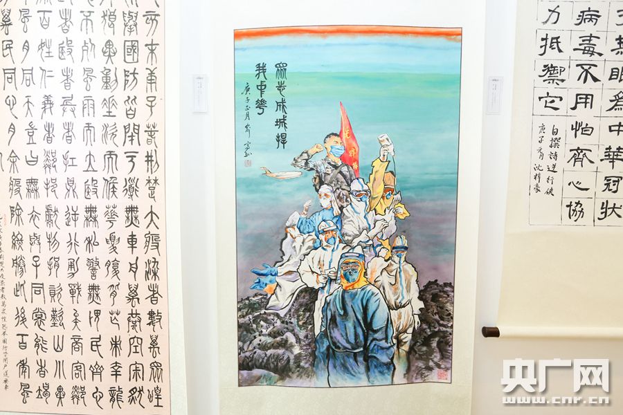 反映廣大醫(yī)務(wù)工作者眾志成城抗擊疫情的書畫作品(央廣網(wǎng)發(fā) 寧波市委宣傳部供圖)