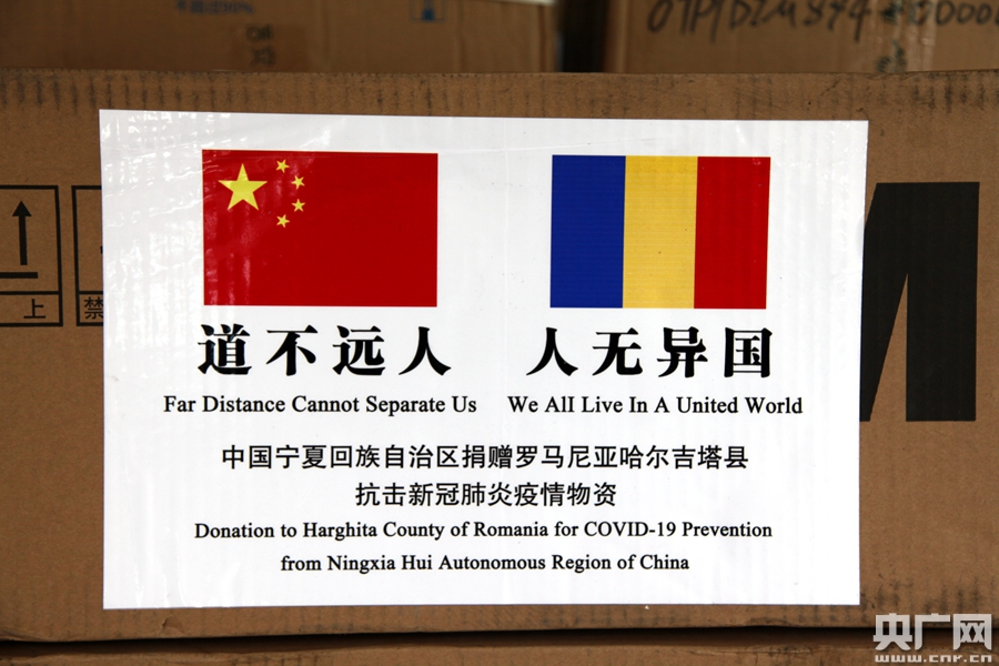 即將發(fā)往國際友城羅馬尼亞哈爾吉塔縣的防疫物資上用中英文寫著“道不遠人 人無異國”,表達了兩地休戚與共,守望相助的深情厚誼。寧夏與羅馬尼亞哈爾吉塔縣于2005年11月正式締結(jié)友城關(guān)系。近年來兩地交往頻繁,在農(nóng)業(yè)、養(yǎng)殖業(yè)、教育等多個領(lǐng)域積極開展務(wù)實交流合作。疫情來襲,兩地政府相互致函慰問聲援,攜手戰(zhàn)勝疫情。