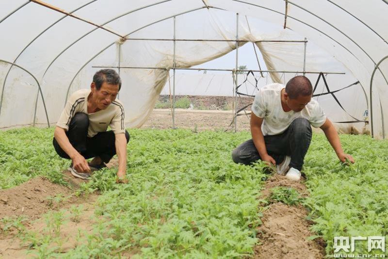 余明勝(左)的蔬菜大棚(央廣網(wǎng)發(fā) 田博雅 攝)