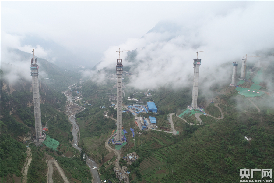 建設(shè)中的四川金陽(yáng)河特大橋(央廣網(wǎng)發(fā) 四川省交通運(yùn)輸廳供圖)