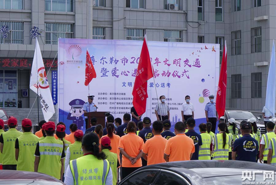 新疆庫爾勒市2020年文明交通暨愛心送考啟動現(xiàn)場(姚謙 攝)