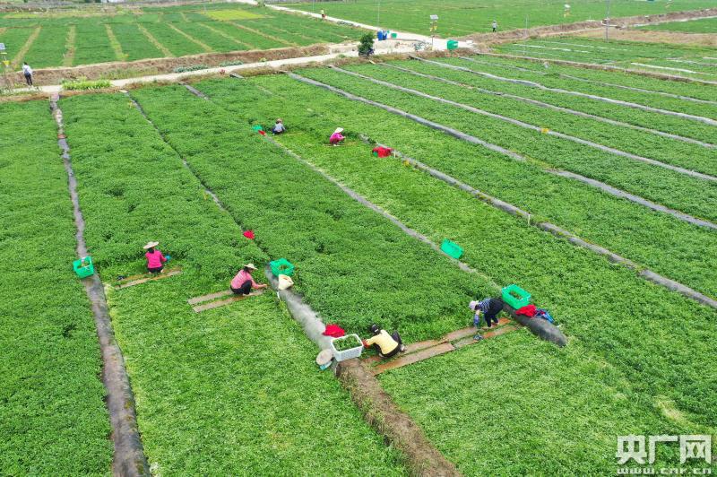 在陽(yáng)山縣青蓮鎮(zhèn)朋塘村,500畝旱地西洋菜為村民提供了110個(gè)崗位。(央廣網(wǎng)發(fā) 李劍鋒 攝)