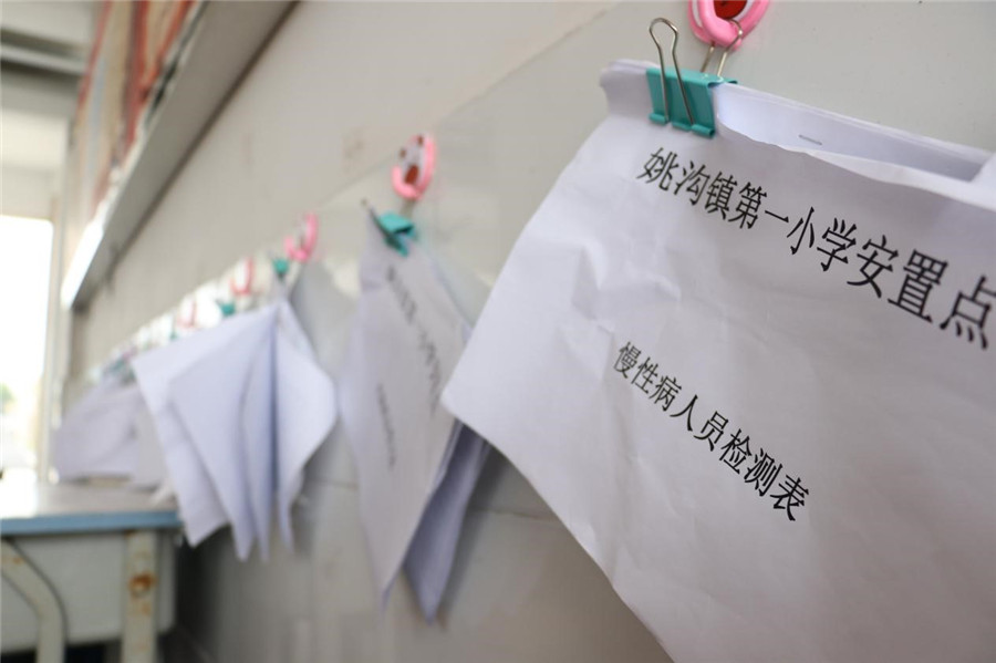 臨時安置點內的人員醫(yī)療檢測表。(央廣網記者 徐鵬 攝)