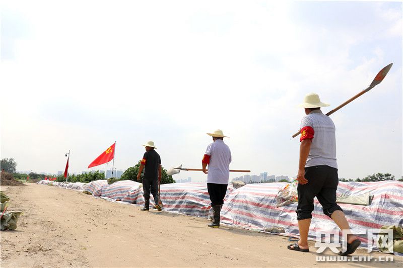 包河區(qū)淝河鎮(zhèn)關(guān)鎮(zhèn)村老黨員干部、民兵、老圩民等24人組成的巡堤隊,24小時不間斷沿岸巡堤。(央廣網(wǎng)記者 徐鵬 攝)