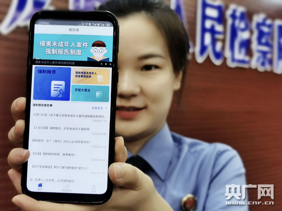 央廣網(wǎng)重慶7月23日消息(記者陳鵬)為了認真落實最高檢“一號檢察建議”和最高人民檢察院等9部門共同下發(fā)的《關(guān)于建立侵害未成年人案件強制報告制度的意見(試行)》(下稱《意見》)。今天上午,由重慶市九龍坡區(qū)人民檢察院、重慶市公安局九龍坡區(qū)分局探索開發(fā)的“強制報告APP”上線試運行,這也是最高檢等9部門下發(fā)《意見》以來全國首個“強制報告APP”。