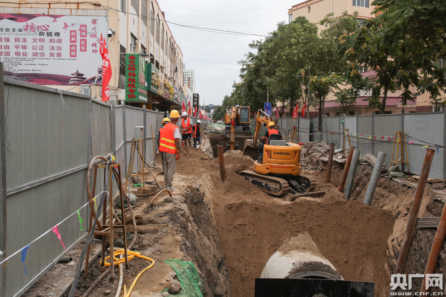 在興慶區(qū)北塔巷施工現(xiàn)場,兩臺挖機正在狹窄的空間中作業(yè),施工現(xiàn)場兩側(cè)留出1.5米左右的通道供市民通行。作為銀川市雨污分流改造一期工程的一部分,這項工程能有效地提高興慶區(qū)西北部排水能力,解決城市積水內(nèi)澇問題,對完善城市排水系統(tǒng)具有重要的現(xiàn)實意義。