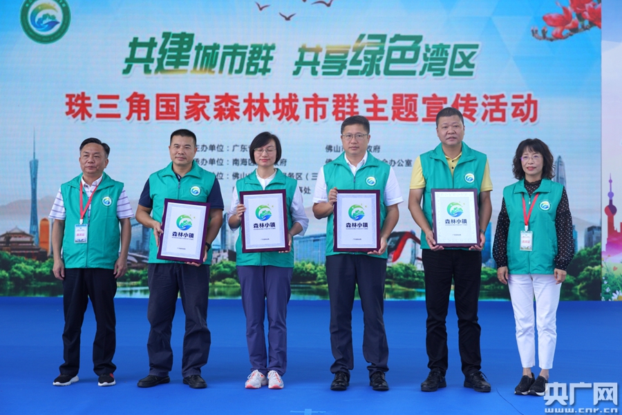 △為獲得“2019年廣東省森林小鎮(zhèn)”的四個鎮(zhèn)街進行授牌(央廣記者 鄭澍 攝)