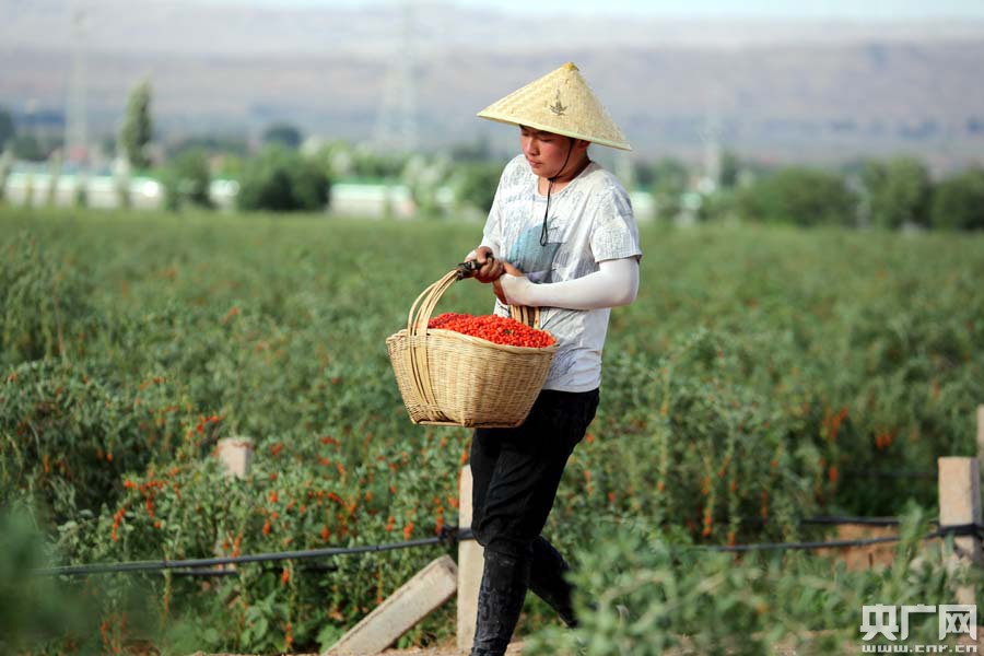 央廣網(wǎng)同心8月11日(記者郭長江 徐升)每年6到9月,是寧夏枸杞的最佳采摘時節(jié)。寧夏同心縣河西鎮(zhèn)同德村的潤德枸杞莊園中早已是人頭攢動。來自周邊鄉(xiāng)鎮(zhèn)的成百上千村民拎著籃子采摘枸杞,一顆顆鮮紅的枸杞踏上了新的“旅途”。