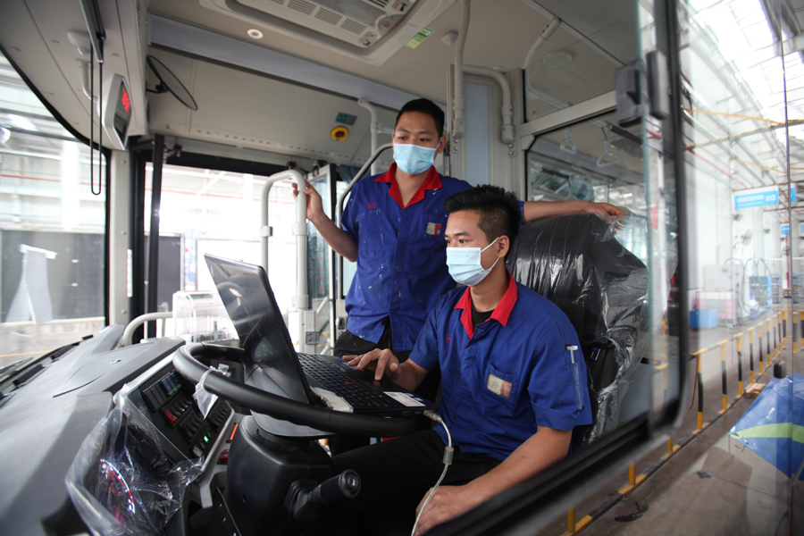 最近幾天,基地的總裝車(chē)間正在全速運(yùn)轉(zhuǎn),為青海省海東市生產(chǎn)的50輛K8系列純電動(dòng)公交車(chē)陸續(xù)下線(xiàn),進(jìn)入測(cè)試環(huán)節(jié)。受疫情影響,工廠(chǎng)于2月24日開(kāi)始陸續(xù)復(fù)工。截至目前,超過(guò)90%的員工已就位,產(chǎn)能恢復(fù)到疫情之前水平。根據(jù)訂單情況,預(yù)計(jì)到今年年底將生產(chǎn)500多臺(tái)純電動(dòng)客車(chē)。