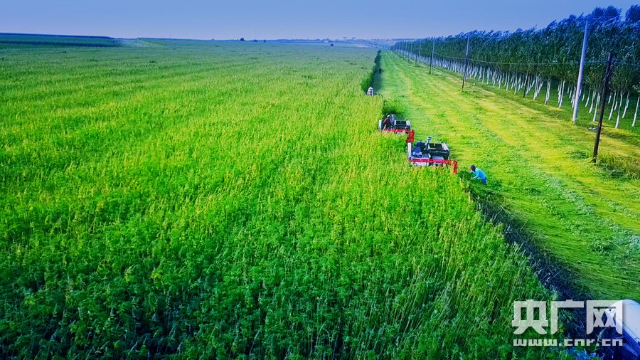 有機漢麻收割現(xiàn)場(央廣網(wǎng)發(fā) 穆棱市委宣傳部供圖)