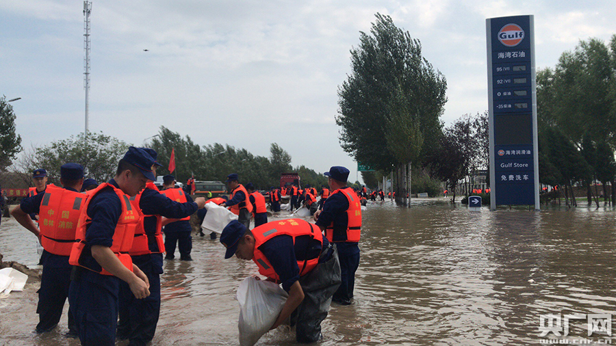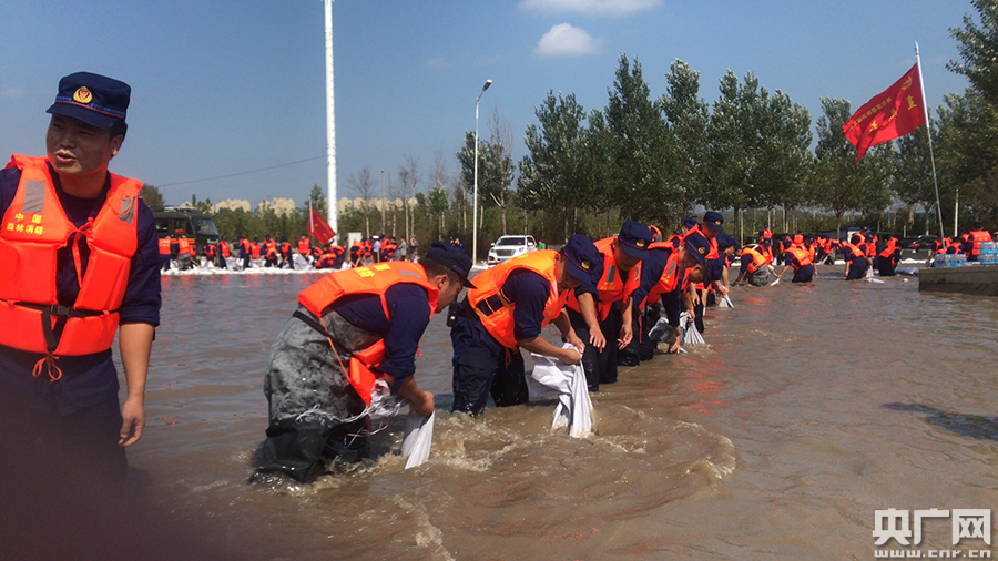 全體參戰(zhàn)指戰(zhàn)員裝運(yùn)沙袋、加固堤壩,用肩膀?yàn)楣枮I市筑起了一道“安全防線”。截至13時(shí),筑堤約1300米,裝運(yùn)沙袋16000余袋,救助被困群眾1人。