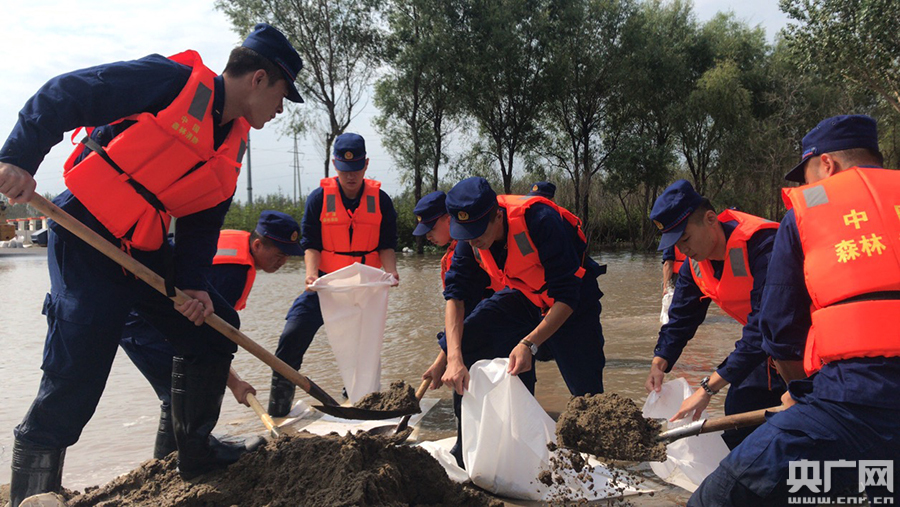 填裝沙袋(央廣網(wǎng)發(fā) 哈爾濱森防支隊(duì)提供)