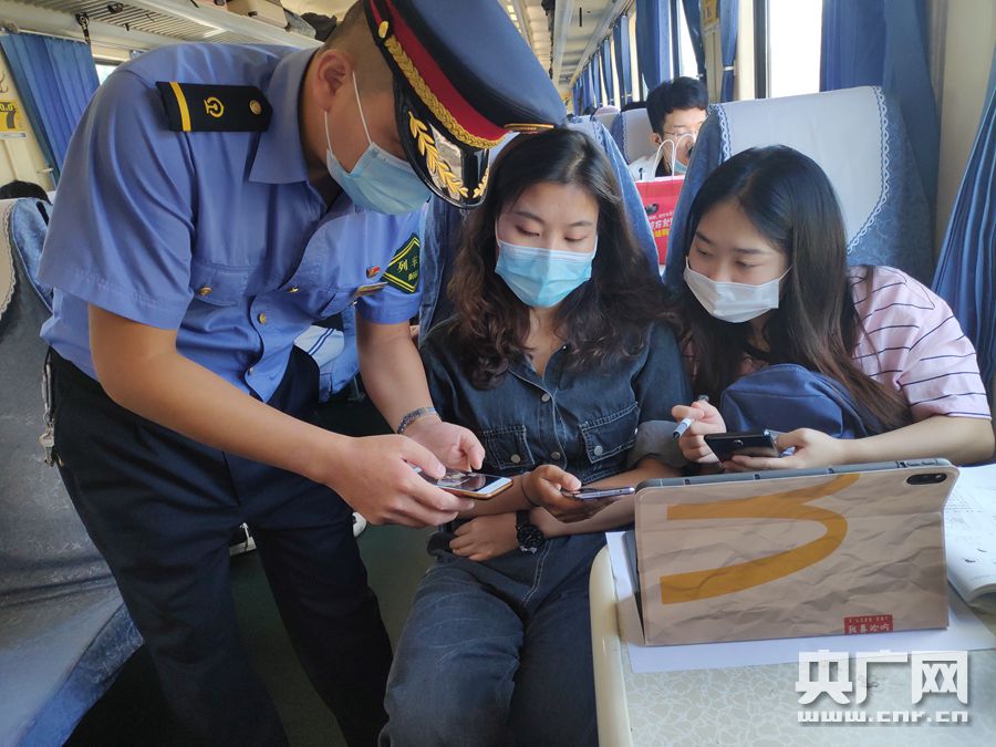 南昌客運段T145次列車上工作人員指導旅客通過12306進行訂餐。(央廣網(wǎng)發(fā) 通訊員供圖)