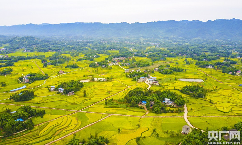 梁平區(qū)新盛鎮(zhèn)樂都社區(qū),金黃的稻谷鋪滿大地。(央廣網(wǎng)發(fā) 熊偉 攝)