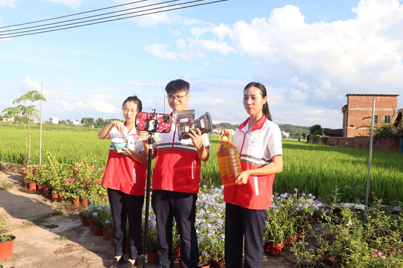 當(dāng)天,志愿者們分頭行動,在田間地頭嘗試開展助農(nóng)直播,推銷帶貨,拓寬農(nóng)特產(chǎn)銷售渠道,兩個小時為里仁村銷售大米500多斤,150斤花生油。接下來,志愿者將總結(jié)直播方法,幫助村民學(xué)會直播。
