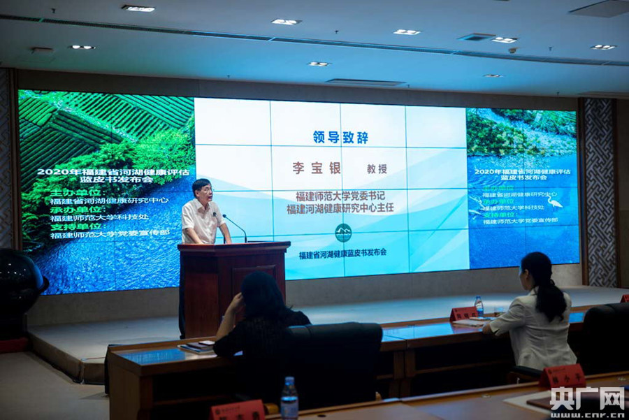 福建師范大學校黨委書記、福建省河湖健康研究中心主任李寶銀教授致辭(央廣網(wǎng)發(fā) 通訊員供圖)