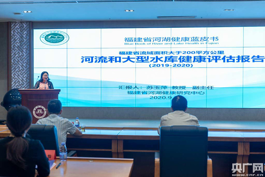 福建省河湖健康研究中心副主任、福建師范大學環(huán)境科學與工程學院副院長蘇玉萍教授發(fā)布評估結果(央廣網(wǎng)發(fā) 通訊員供圖)