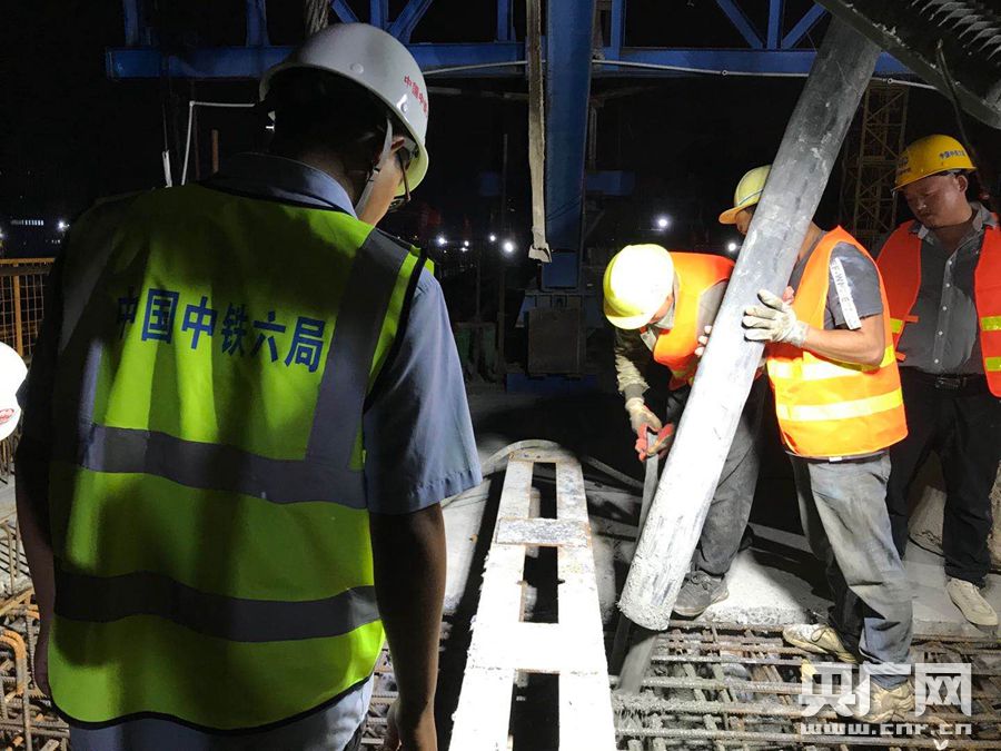 施工人員在澆筑混凝土(央廣網(wǎng)記者 陳庚 攝)