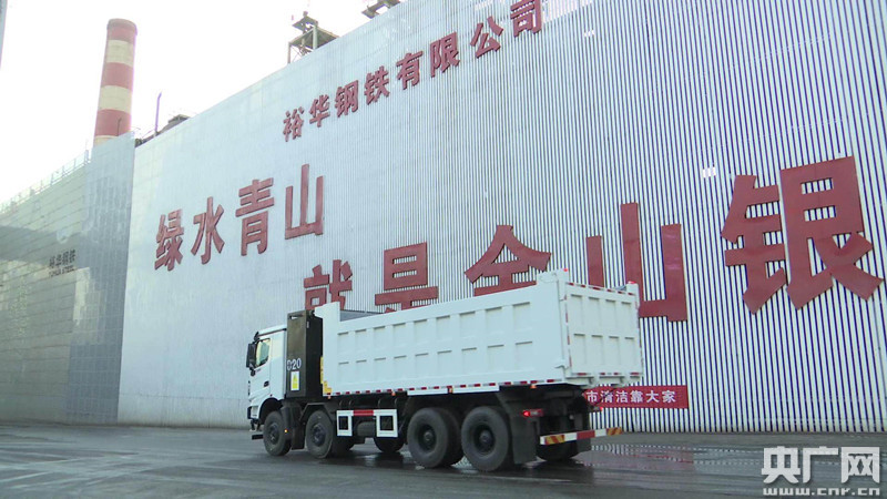 裕華鋼鐵有限公司廠區(qū)內(nèi)新能源重型貨車(央廣網(wǎng)發(fā) 張曉萌供圖)
