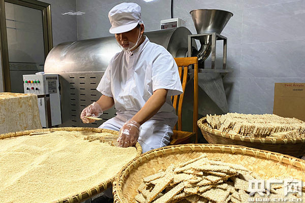 王康在“明翰紅坊”里制作谷芽糖(央廣網(wǎng)記者 堯遙 攝)