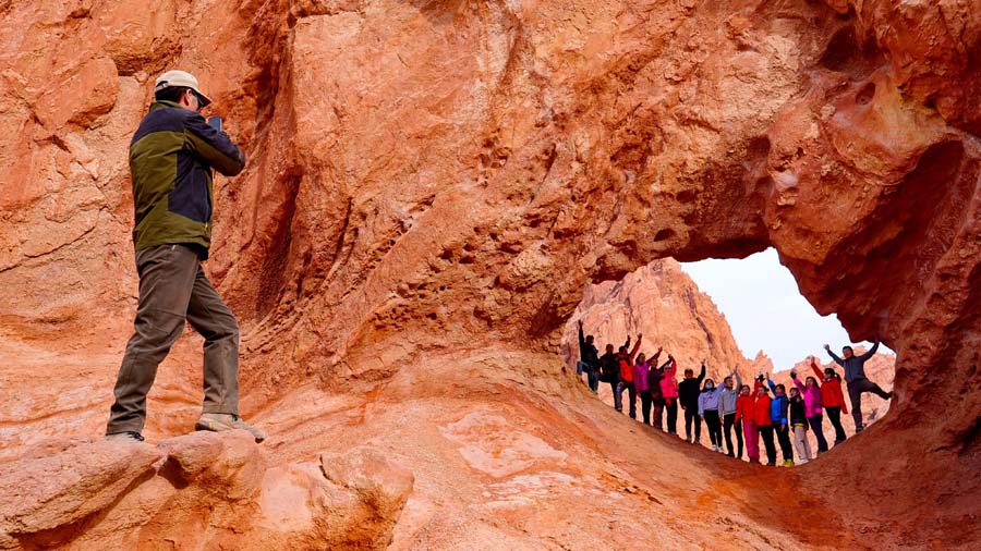 在瑪納斯縣碧龍灣景區(qū),澄明的湖水,倒映著天空,仿佛一塊油畫畫布,又將起伏的山脈,雅丹地貌倒映在畫布上。自駕游車隊,行駛在蜿蜒的山路上,沿著碧龍灣景區(qū)向東走,鳳凰湖在遠(yuǎn)處雪山的映襯下,與丹霞地貌構(gòu)成了一幅壯美畫卷。昌吉游客陳霞說:“隨著這個光線不同,水的顏色也在變化,特別美,我們在這拍拍照片,讓朋友欣賞一下!