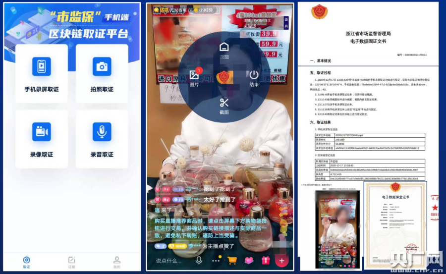 央廣網(wǎng)杭州12月17日消息(記者陳瑜艷 通訊員市聞)記者今天從浙江省市場監(jiān)管局了解到,一款基于區(qū)塊鏈技術(shù)的取證APP已于近日發(fā)布。這是繼7月浙江上線全國市場監(jiān)管系統(tǒng)首條區(qū)塊聯(lián)盟鏈“市監(jiān)鏈”及應(yīng)用平臺后,發(fā)布的全國首個基于區(qū)塊鏈技術(shù)對各類移動端應(yīng)用的取證工具,今后將在以社交、直播電商等移動端應(yīng)用的監(jiān)管執(zhí)法中發(fā)揮重要作用。