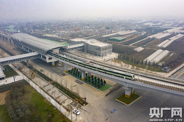 西安地鐵5號線列車駛出東馬坊車站(央廣網(wǎng)發(fā) 通訊員焦宏濤 攝)