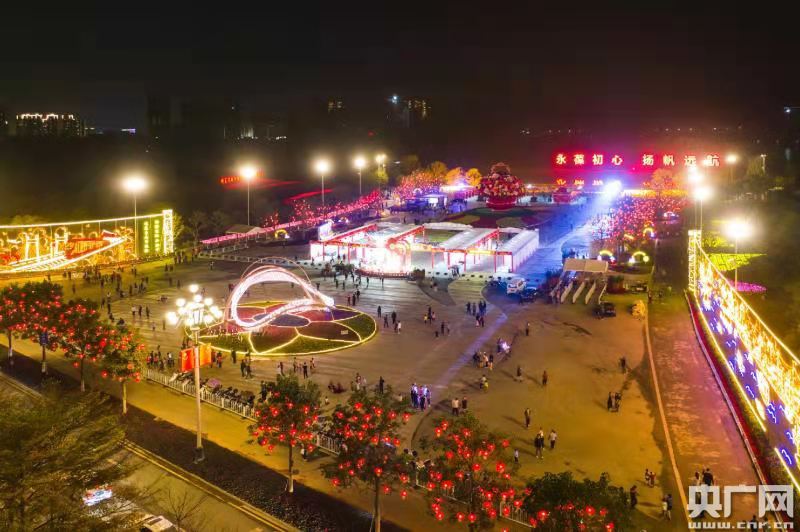 高達(dá)15米的大花籃是知識城分會場的亮點之一。待華燈初上,圍繞花籃萬盞燈籠點亮,呈現(xiàn)火樹銀花的勝景。