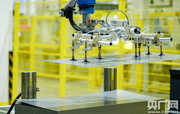 “黑燈工廠”內(nèi),用于生產(chǎn)組裝的機械手(央廣網(wǎng)發(fā) 王睿瑤 攝)