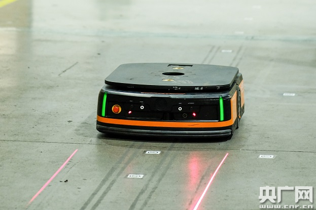 用于連接各生產(chǎn)線的智能運輸機器人(央廣網(wǎng)發(fā) 王, 攝)
