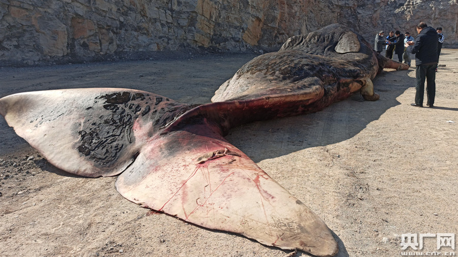 渤海海域首次發(fā)現(xiàn)擱淺抹香鯨(央廣網(wǎng)發(fā) 蘇慧慧 攝)