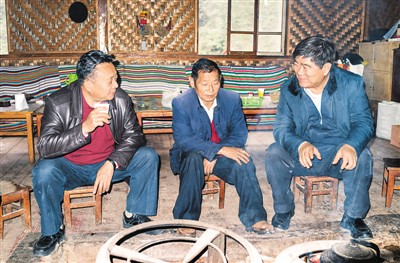 圖為本報(bào)記者張德修(右),怒江傈僳族自治州州委副書記商小云(左)在火塘前與“老縣長(zhǎng)”高德榮暢談獨(dú)龍江鄉(xiāng)的美好前景。