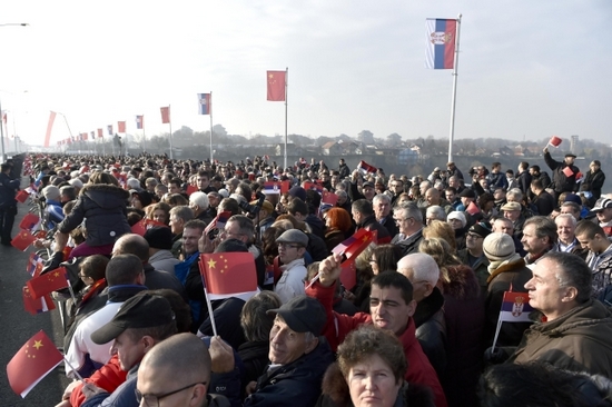 一早,上萬(wàn)名貝爾格萊德市民就來(lái)到橋上,揮舞著中塞兩國(guó)國(guó)旗,等待兩國(guó)總理的到來(lái)。