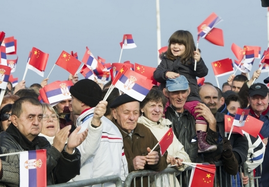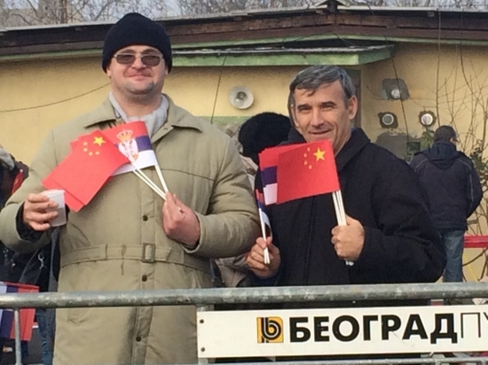 。〒]舞著兩國(guó)國(guó)旗的貝爾格萊德市民,攝影:郝亞琳)