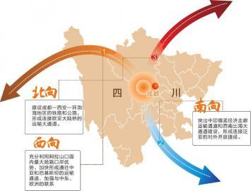 “全面融入‘一帶一路’建設(shè),加快構(gòu)建四川綜合運輸國際大通道!笔“l(fā)改委有關(guān)人士表示,從而構(gòu)造全域開放格局。西向充分利用阿拉山口國內(nèi)最大陸路口岸優(yōu)勢,加快形成通往中亞和巴基斯坦的運輸通道,加強與中東、歐洲的聯(lián)系;南向突出中印緬孟經(jīng)濟走廊運輸通道和西南出海大通道建設(shè),形成連接泛亞的對外開放捷徑。北向建設(shè)成都—西安—環(huán)渤海地區(qū)的鐵路和公路,形成連接歐亞大陸橋的運輸大通道。