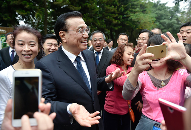 正在山頂平臺晨練游覽的上千名群眾看到總理,爭相與他握手、歡呼問候,還有網(wǎng)友把自己與總理的自拍照上傳到網(wǎng)絡(luò)。