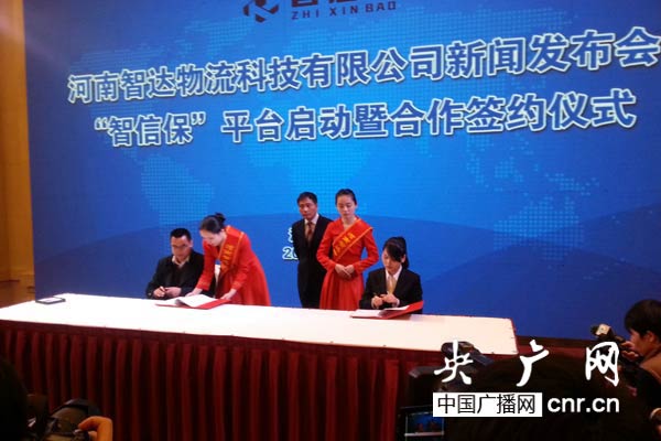 央廣網(wǎng)北京1月11月消息(記者 于聞)河南智達(dá)物流科技有限公司新聞發(fā)布會(huì)——“智信!逼脚_(tái)上線啟動(dòng)暨合作簽約儀式,2015年1月10日在鄭州舉行。
