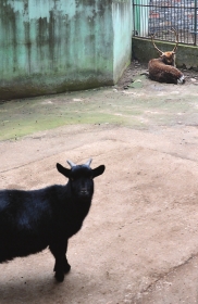 昨天,記者在石峰動(dòng)物園看到,一公一母兩只梅花鹿分別被關(guān)在兩個(gè)相鄰的圈內(nèi)。公鹿體型較大,頭頂有一對(duì)尖尖的鹿角,關(guān)在一起的還有兩只黑山羊。和母鹿關(guān)在一起的則是一只鴕鳥(niǎo)。