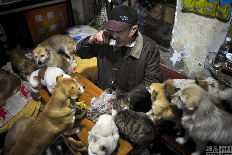 1月15日消息,成都曹家巷工人村的老胡夫婦在過去10年里陸續(xù)收養(yǎng)了近60只流浪貓狗。每天中午12點半到2點是他們和“家人”共餐的時間。桌子上擺著兩袋鹵肉店的碎肉,由近60個“家人”上躥下跳地分享。華西都市報呂甲 攝