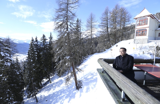 上了山頂,才明白咱總理為什么要來(lái)。達(dá)沃斯小鎮(zhèn)地處阿爾卑斯山脈,周圍群山環(huán)抱。海拔1800米的沙茨阿爾卑山頂視野極好,極目遠(yuǎn)眺,藍(lán)天,白云,雪峰,蒼松,周圍靜謐得似乎只剩下積雪掉落的聲音。