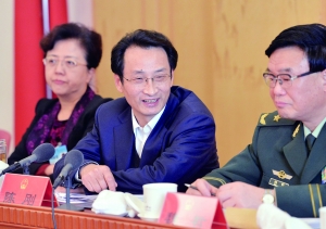 昨日,北京市人大代表、副市長陳剛(中)參加豐臺團小組討論。晨報記者 王穎/攝