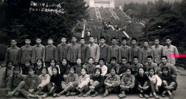 1973年5月1日,合肥八中高二(六)班在南京中山陵合影留念,后排右二為18歲的李克強(qiáng)。
