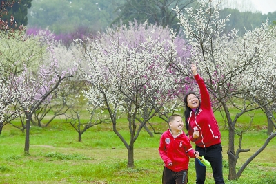 2月19日,一對母子在武漢東湖梅園放風(fēng)箏。春節(jié)長假期間,武漢東湖梅園正值梅花盛開期,眾多游客紛至沓來,游園賞梅。